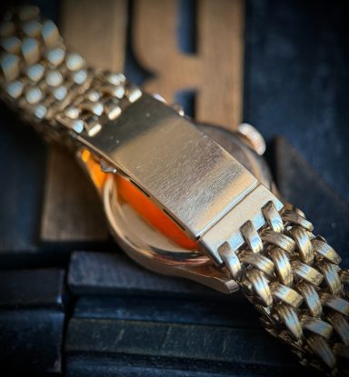 El reloj se encuentra en estado de marcha, aunque no disponemos de historial de revisiones. Todas las piezas son originales, y el brazalete es un trabajo artesanal de joyería francesa.