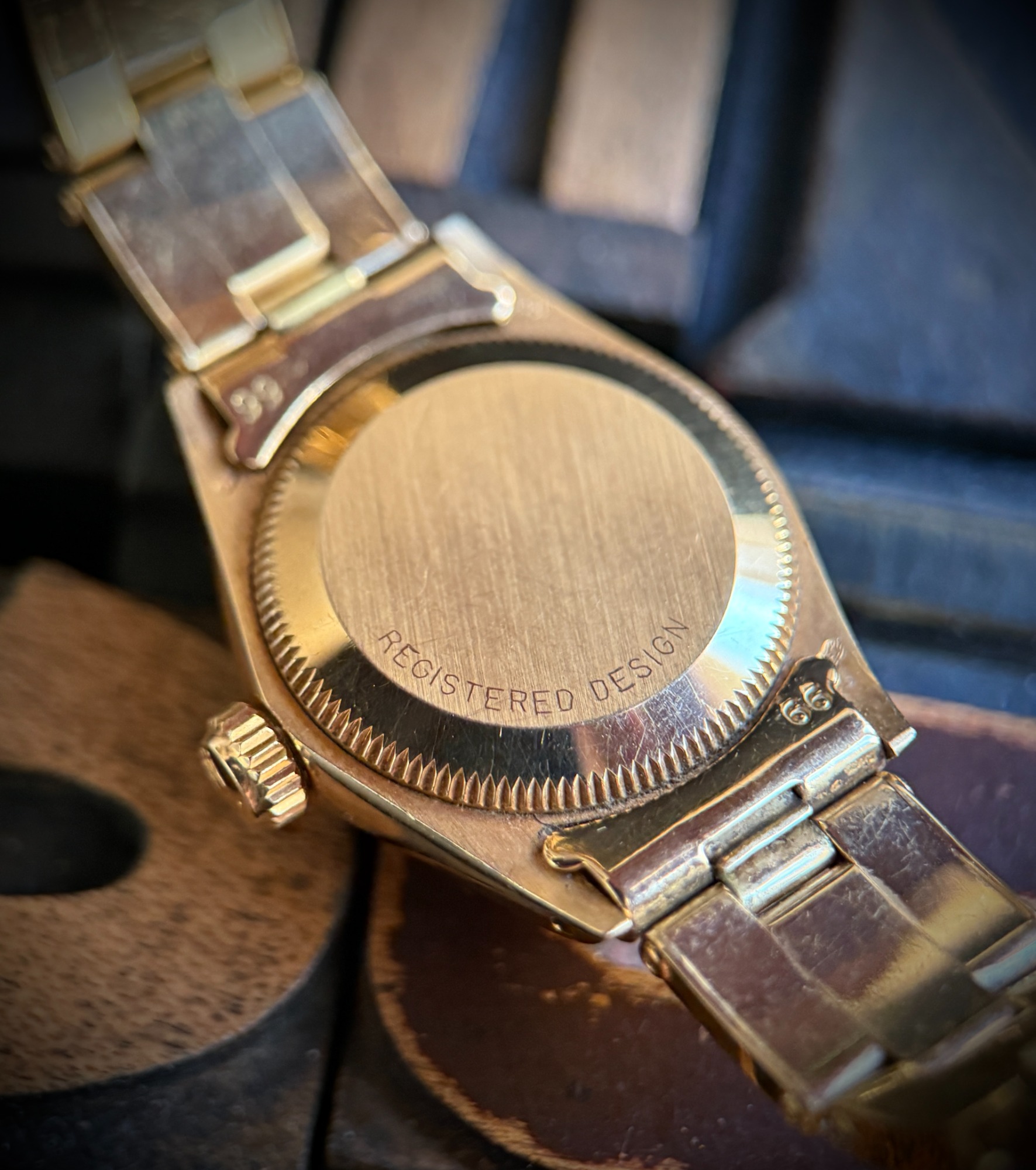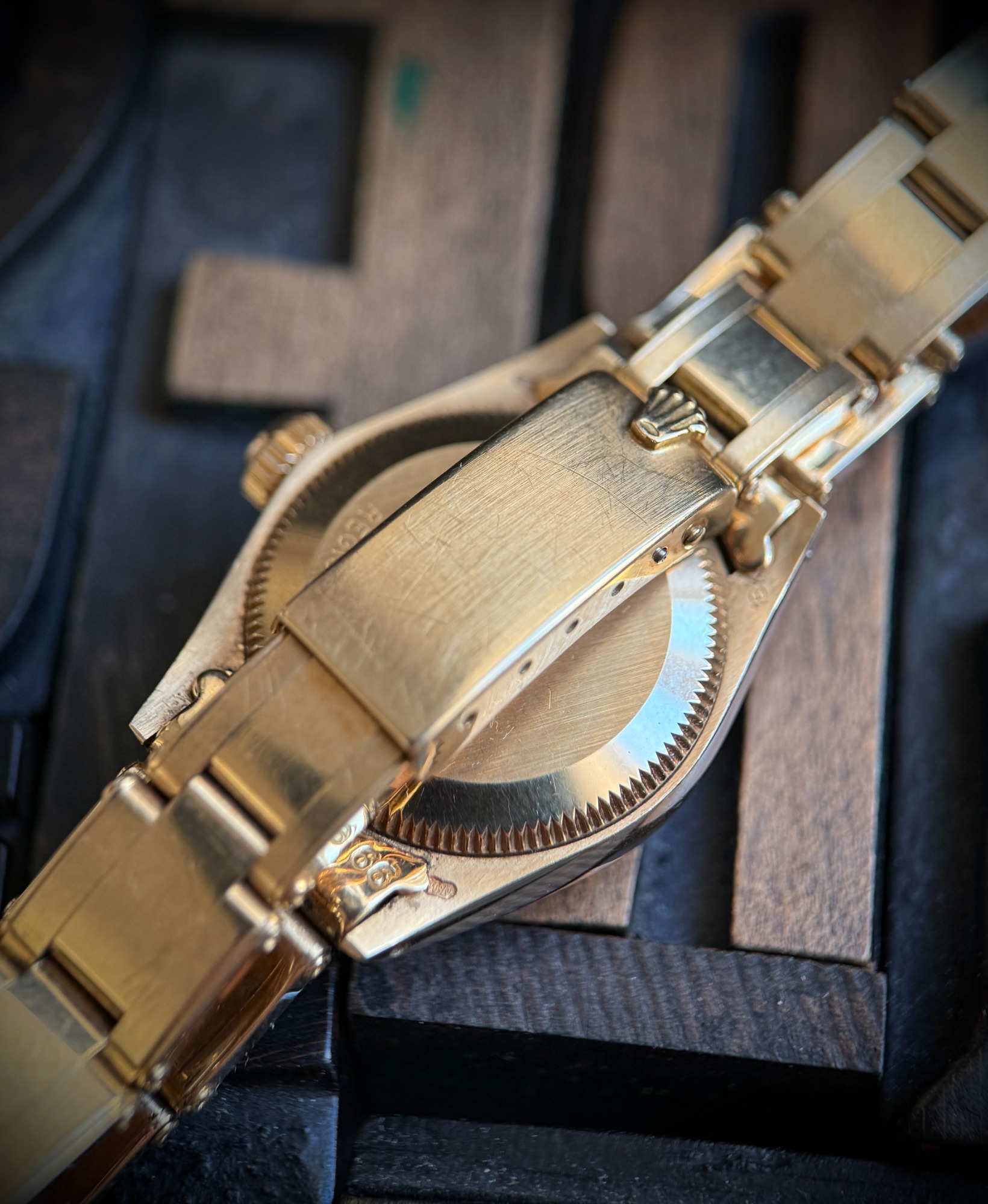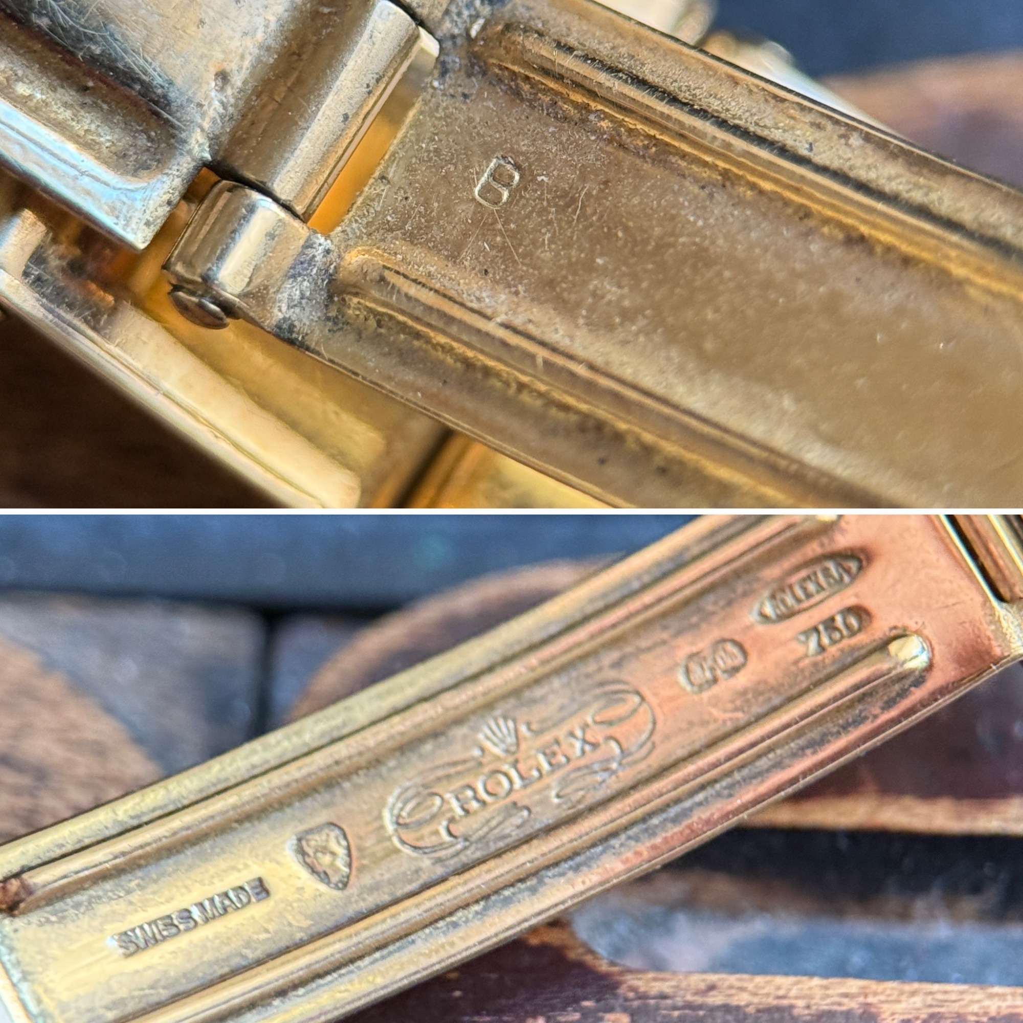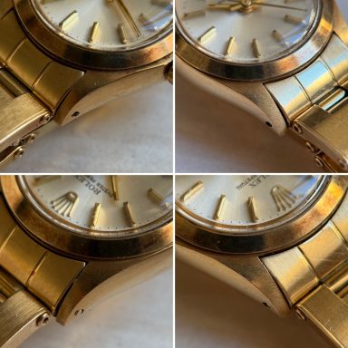 El reloj nunca ha sido pulido, conservando sus líneas originales, y solo muestra marcas menores por el desgaste ocasional.