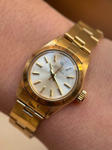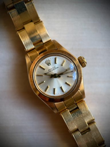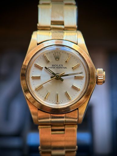 Elegante Rolex Oyster Lady, ref. 6718, en oro amarillo, una pieza clásica que combina estilo y sutileza.