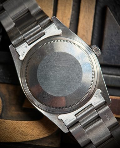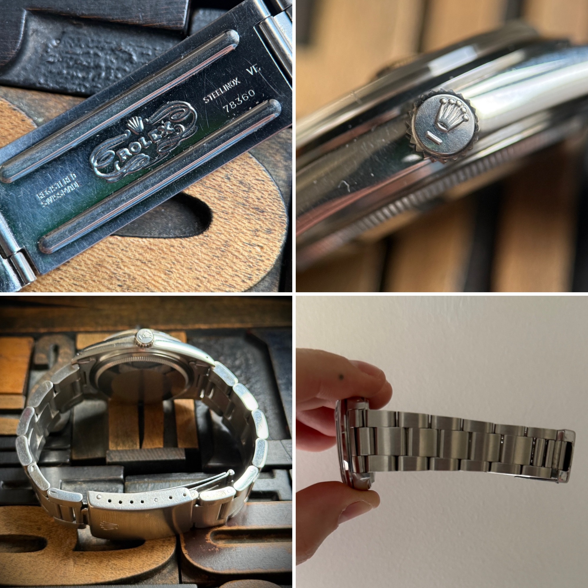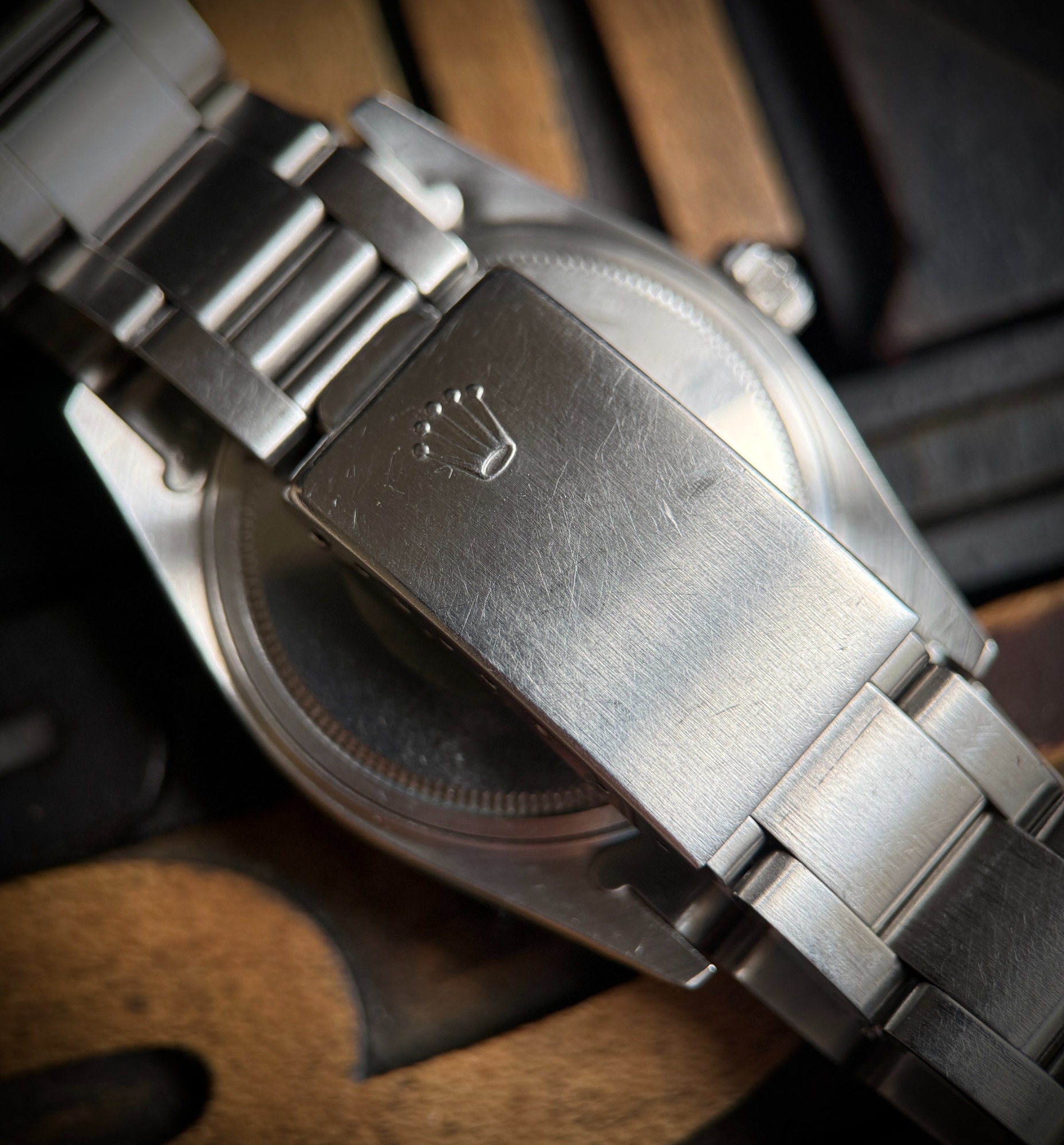 La caja y la pulsera Oyster están en excelente estado, con perfiles gruesos y bien definidos, algo cada vez más raro en un reloj de más de 40 años. Todos los componentes son 100% originales de Rolex.