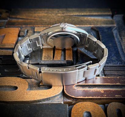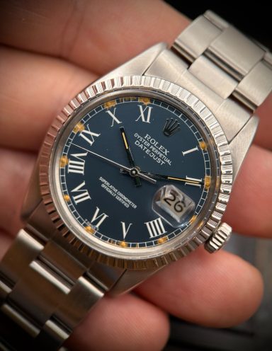 Para entusiastas del vintage y coleccionistas, nos complace presentar este Rolex Datejust referencia 16030 de 1981, un ejemplar especialmente buscado por incorporar la rara esfera azul “Buckley”, una de las configuraciones más deseadas y difíciles de encontrar de este modelo.