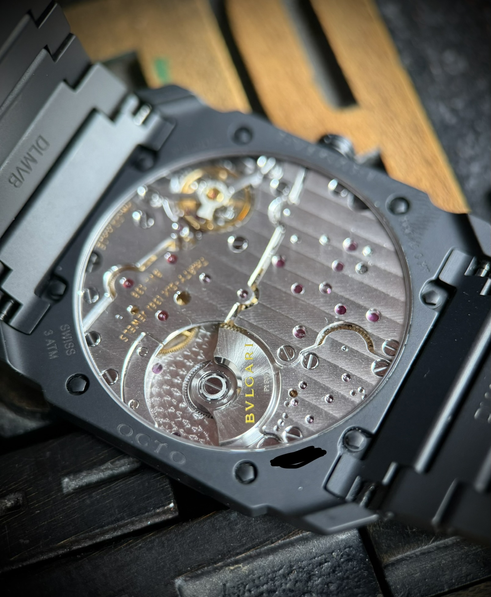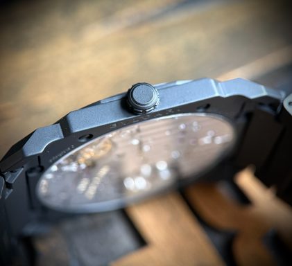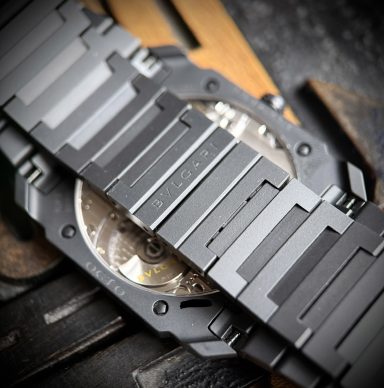Con su aspecto ultraatractivo y su mecánica vanguardista, esta interpretación del reloj Octo Finissimo Automatic es el reloj integral de cerámica más fino con movimiento mecánico: un espectacular logro que ha tenido que enfrentarse al imposible reto de trabajar un material duro y rígido para crear una pieza de extrema finura. Emblema del absoluto vínculo entre el savoir faire joyero y el arte relojero, el enfoque creativo de Bvlgari a la hora de trabajar materiales insólitos aquí se emplea para marcar insospechadas tendencias de diseño en el universo de los relojes suizos. Reloj Octo Finissimo Automatic con movimiento mecánico de manufactura extrafino con carga automática y microrrotor en platino, pequeño segundero, calibre BVL 138 - Finissimo (2,23 mm de grosor) decorado a mano con côtes de Genève y terminación perlada y achaflanada. Reserva de marcha de 60 horas. Caja extrafina de 40 mm de cerámica (5,50 mm de grosor), fondo transparente, corona de cerámica con elemento de cerámica engastado, esfera de cerámica y brazalete de cerámica con cierre desplegable. Hermético hasta 30 metros.